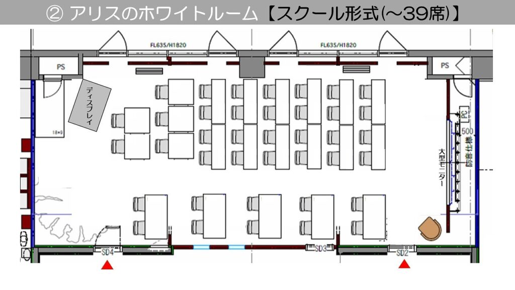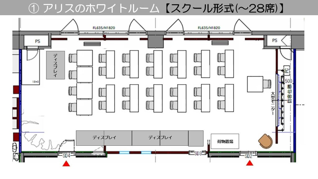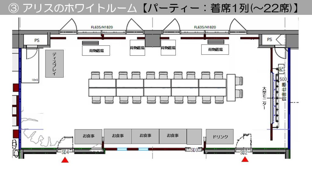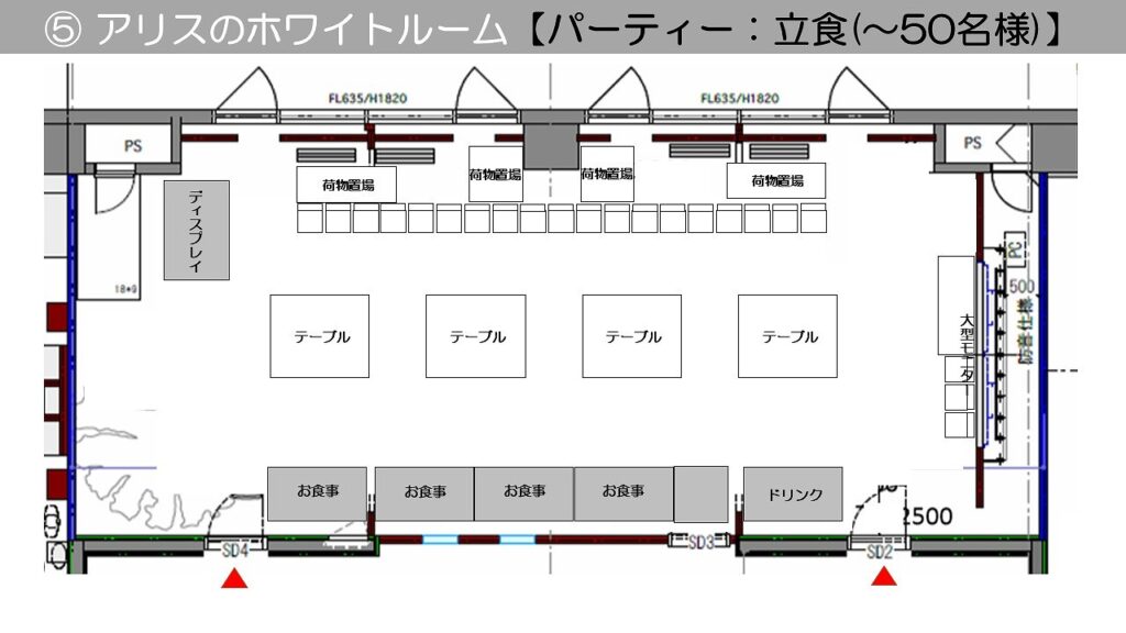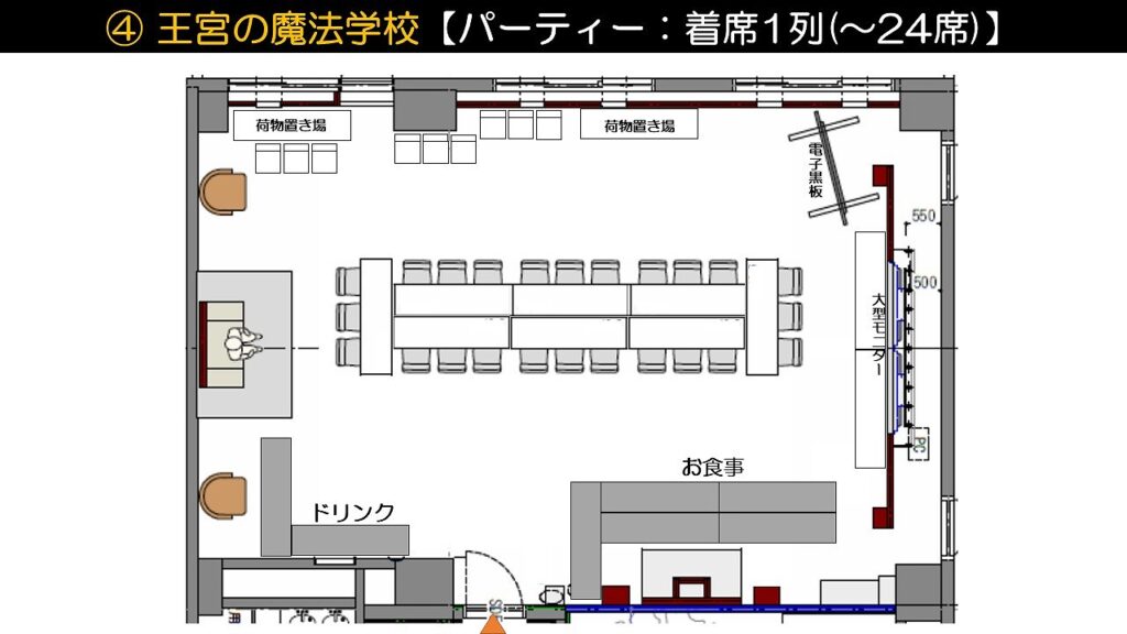 レイアウト事例 施設案内 イベントの目的や企画、参加人数をお伺いした上で、最適なレイアウトをご提案いたします。ご利用開始時間までにスタッフが配置いたしますので、お客様はご来場いただくだけです。また、ご利用後の原状回復も不要ですので、ご予約いただいた時間を有効にご活用ください。 チャットで簡単問合せ ご予約の流れ 前の記事 メニューカタログ 次の記事
