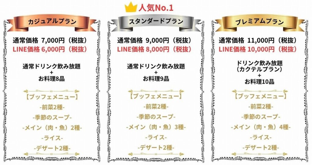 ※上記金額には、お食事、飲み放題、スペース利用料のすべてが含まれております。