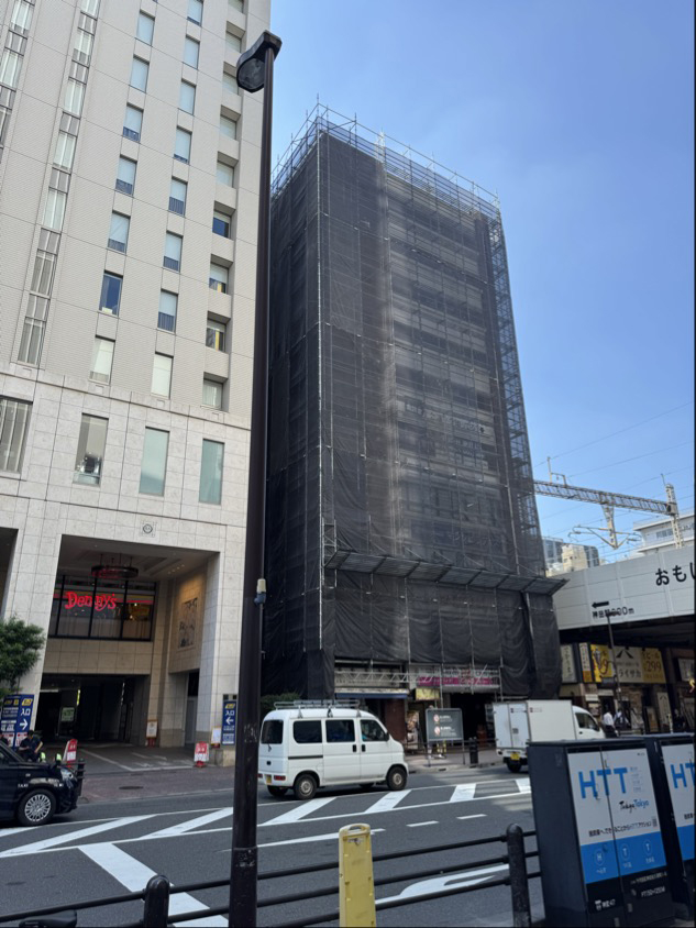アイデアの城が入っております秋葉原の「ニュー千代田ビル」ですが、現在、外壁の塗装工事中のため足場が組まれております。