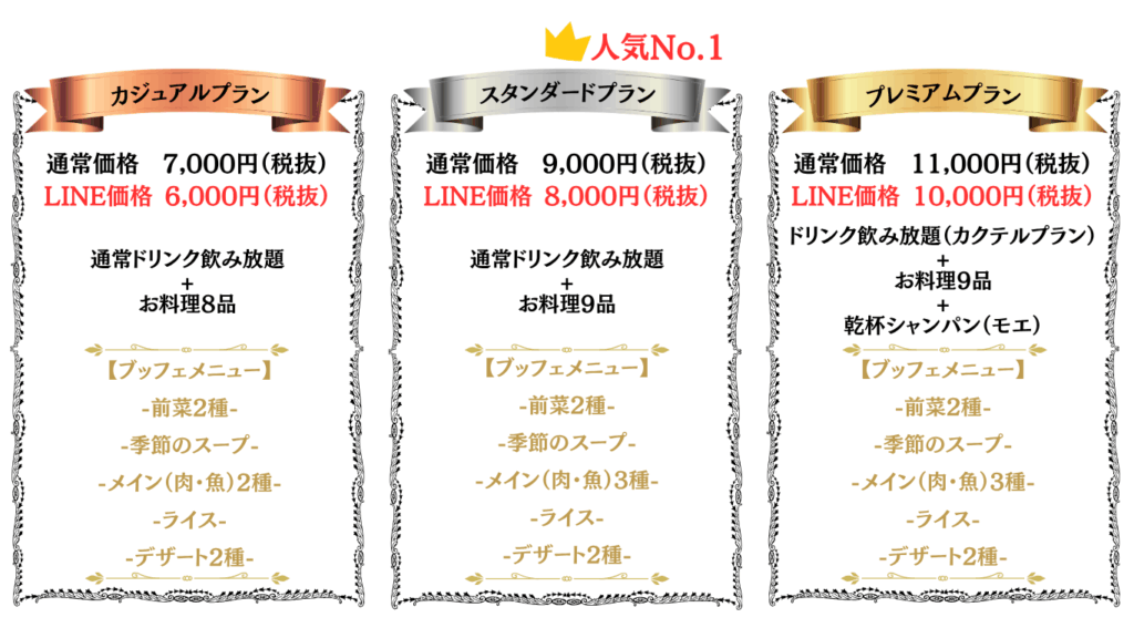 ※金土日祝は各プランの価格が1,000円増しになりますので、ご了承くださいませ。